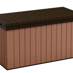 Сундук сочетает в себе очень прочную конструкцию и элегантный дизайн. Изготовлен из инновационного материала EVOTECH™, устойчивого к погодным условиям и ультрафиолетовому излучению. Рустикальная фактура, напоминающая дерево, и стильная двухцветная оправа - это дополнительные эстетические достоинства изделия. Благодаря большой вместительности в сундук Darwin поместятся подушки и другие принадлежности, что поможет поддерживать порядок на террасе, в патио или саду. Применение приводов облегчает открытие крышки, а закрытие крышки на замок позволяет при необходимости держать сундук безопасно закрытым. Сундук также может использоваться как дополнительное место для сидения.